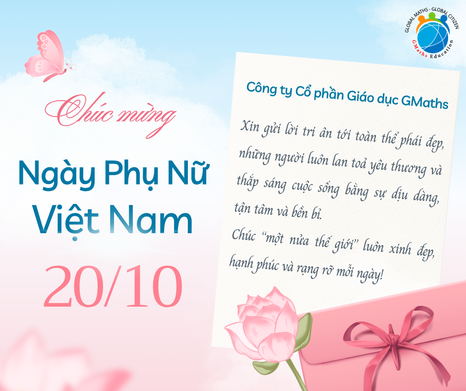 Công ty Cổ phần Giáo dục GMaths xin gửi lời tri ân tới toàn thể phái đẹp, những người luôn lan toả yêu thương và thắp sáng cuộc sống bằng sự dịu dàng, tận tâm và bền bỉ.